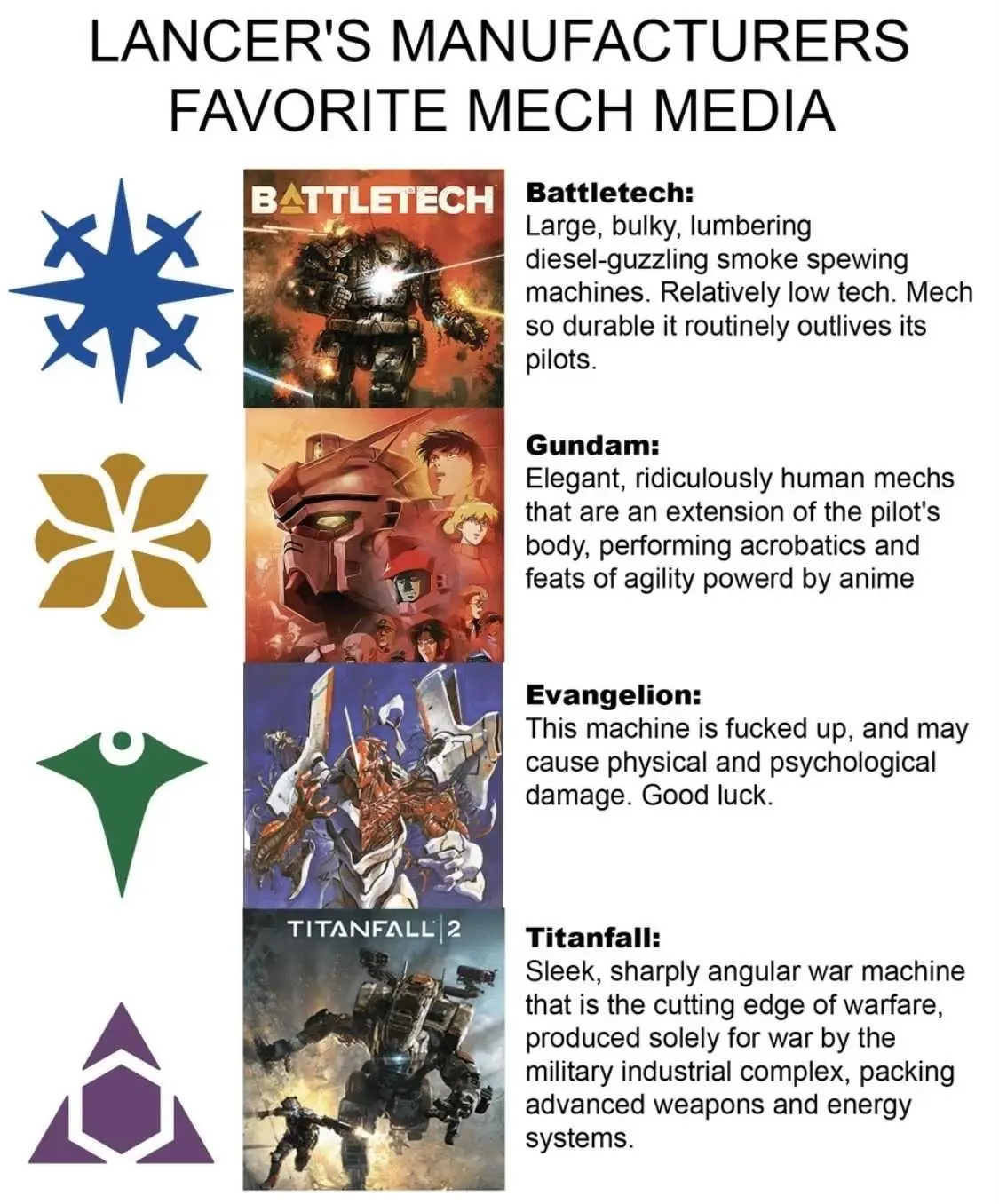 arrow-up1193arrow-down1imageMech media [Lancer]lemmy.blahaj.zonetgirlschierke@lemmy.blahaj.zone to RPGMemes @ttrpg.networkEnglish · 25 days agomessage-square51fedilink
