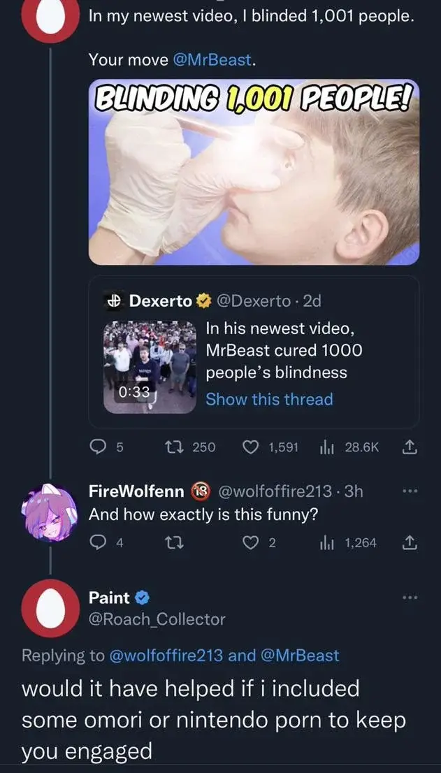 The person with the anime profile pic has the “no under 18” emoji (🔞) so they probably either make or share NSFW content. My guess is the OP checked out their profile and found Nintendo and Omori NSFW stuff and responded with a targeted quip